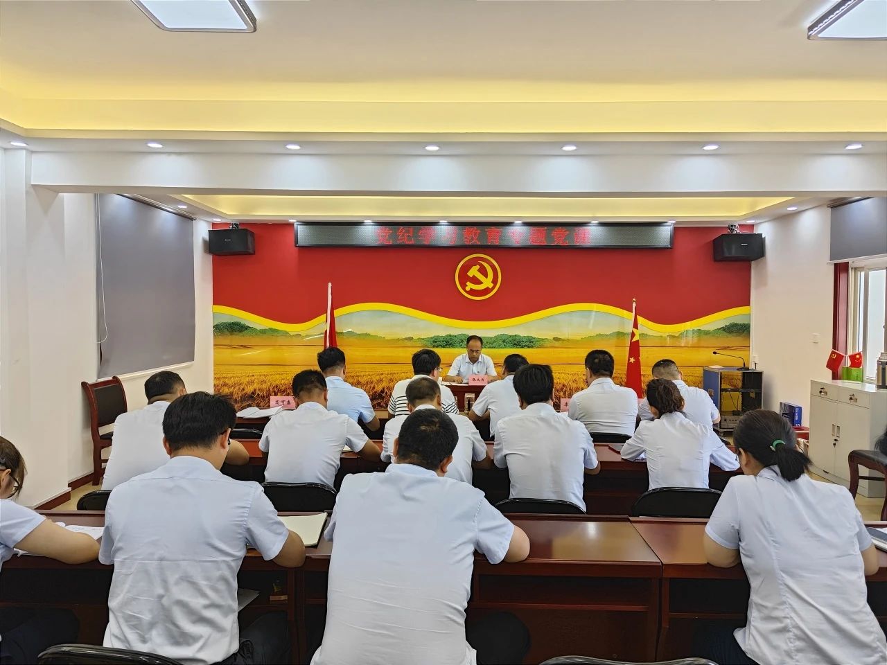座談會上,張大為首先聽取了糧油市場黨紀(jì)學(xué)習(xí)教育工作開展情況匯報(bào),詳細(xì)了解了上半年市場在招商運(yùn)營、貿(mào)易合作、安全生產(chǎn)等方面工作進(jìn)展,分析研判了當(dāng)前市場發(fā)展形勢并提出希望。隨后,張大為從加強(qiáng)黨的紀(jì)律教育的重要性、學(xué)深悟透黨的創(chuàng)新理論和法規(guī)條例、自覺學(xué)紀(jì)知紀(jì)明紀(jì)守紀(jì)以及奮力開創(chuàng)集團(tuán)和糧油市場事業(yè)發(fā)展新局面等方面為與會人員作了專題授課。